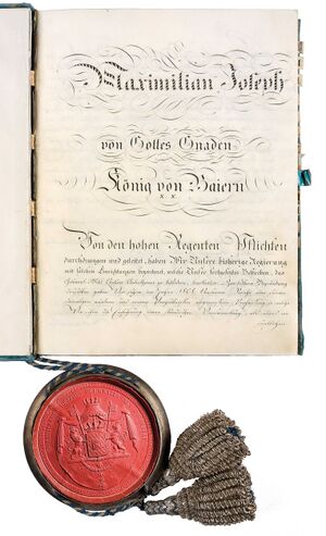 - 1818: Bayern erhält eine neue Verfassung und wird eine Konstitutionelle Monarchie.[1]