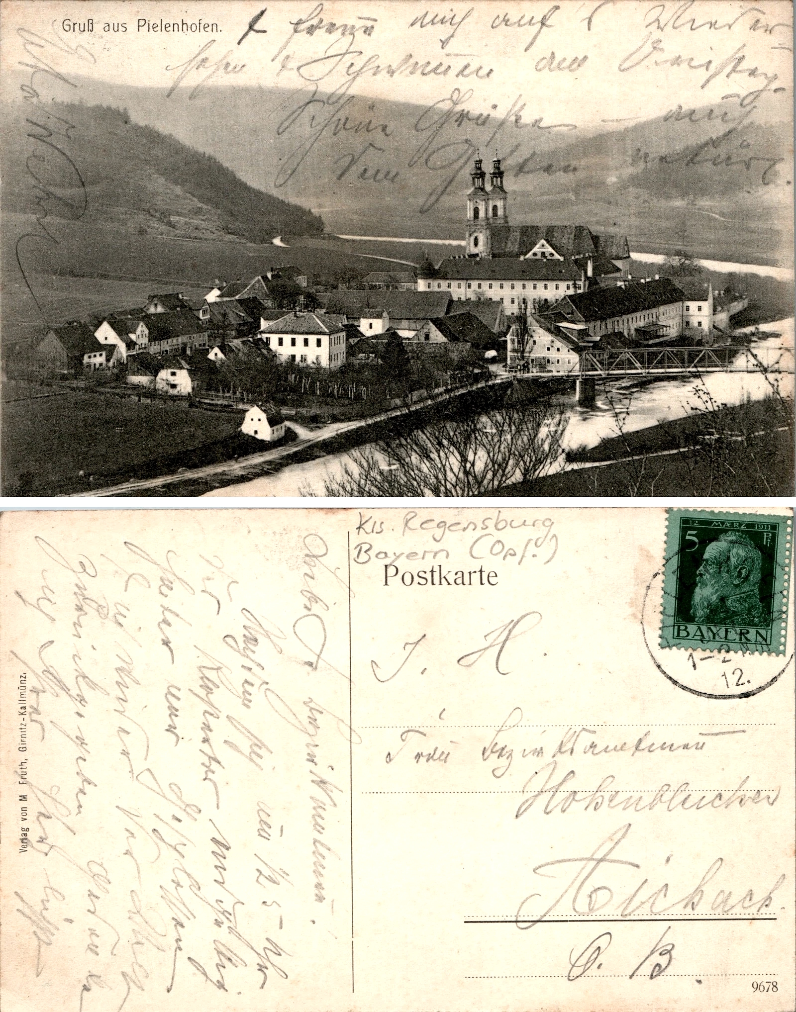 Datei:AK - Pielenhofen -Ortsansicht von Südosten - 1912.jpg