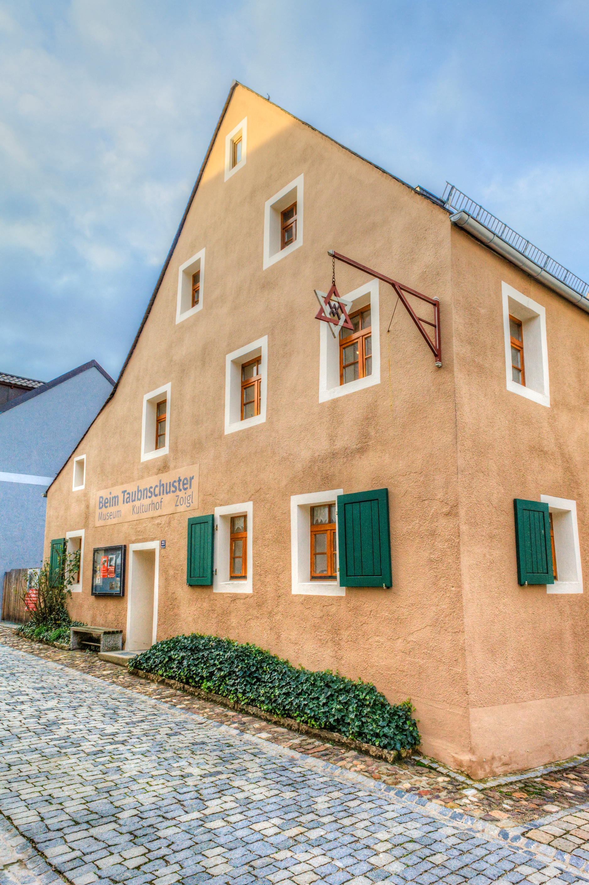 Fassade des Kulturhofs mit ausgehängtem Zoiglstern