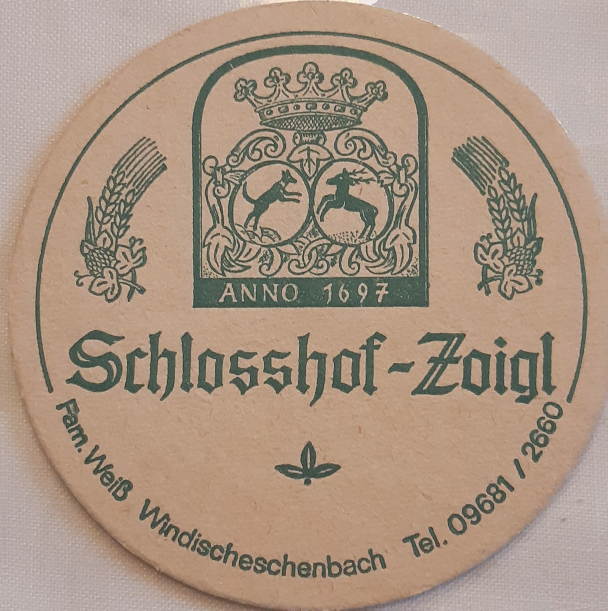 Bierdeckel - Anno 1697 - Schlosshof-Zoigl - Fam Weiß Windischeschenbach.