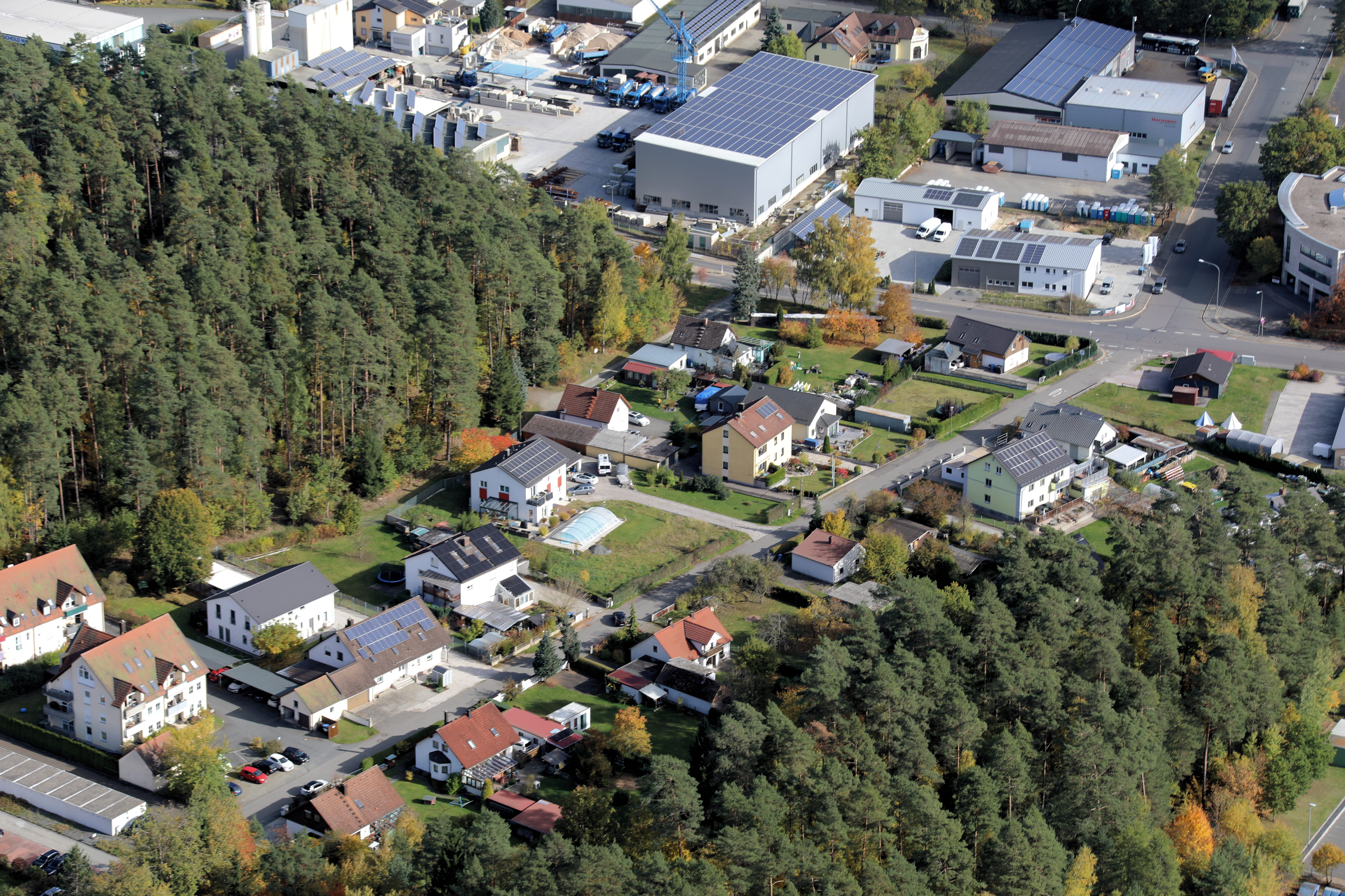 Brandweiher ist ein Ortsteil der Stadt Weiden am gleichnamigen Gewerbegebiet Brandweiher: Stadt Weiden, Oberpfalz, Bayern: (18. Oktober 2025)
