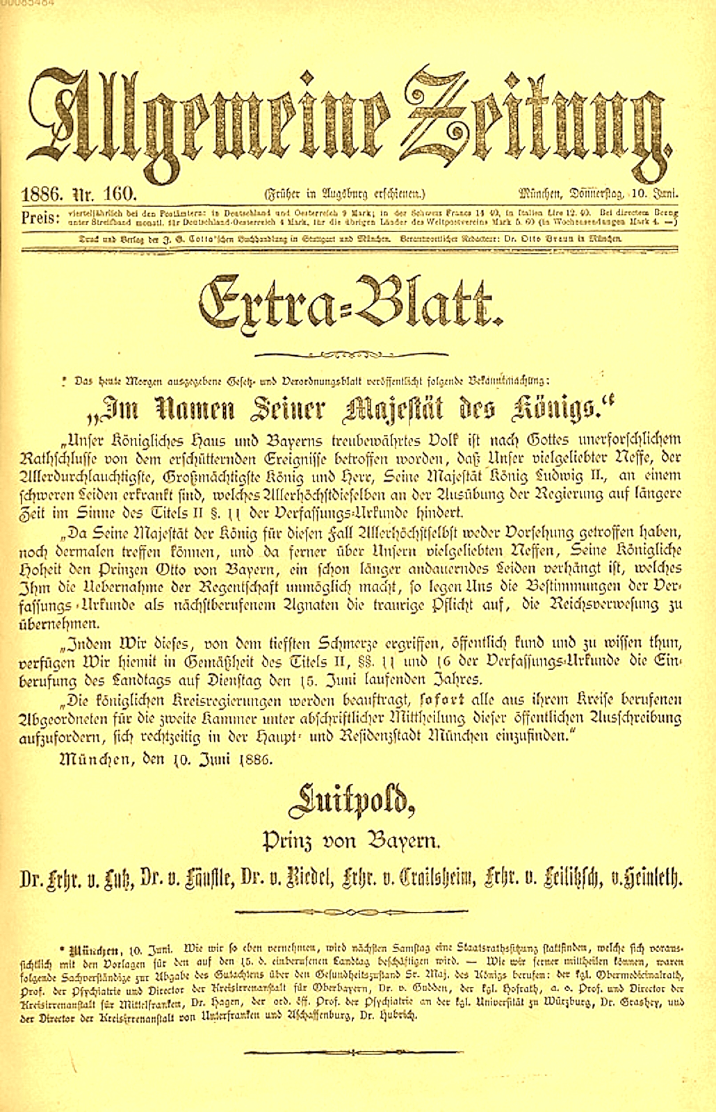 Extrablatt - Entmündigung König Ludwig II - 1886-06-10