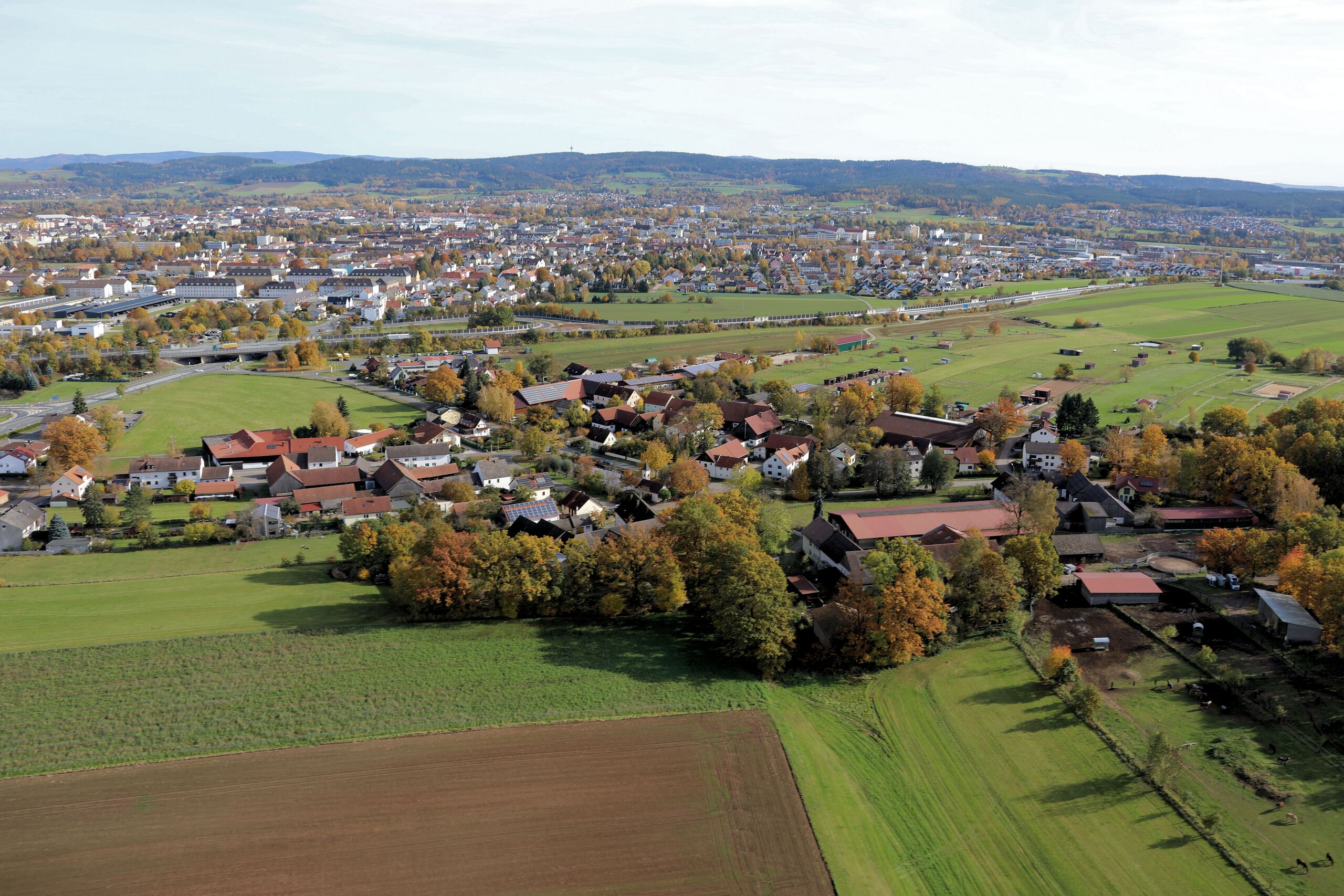 Frauenricht (Bildmitte), Stadt Weiden (im Hintergrund): Oberpfalz, Bayern (2023)