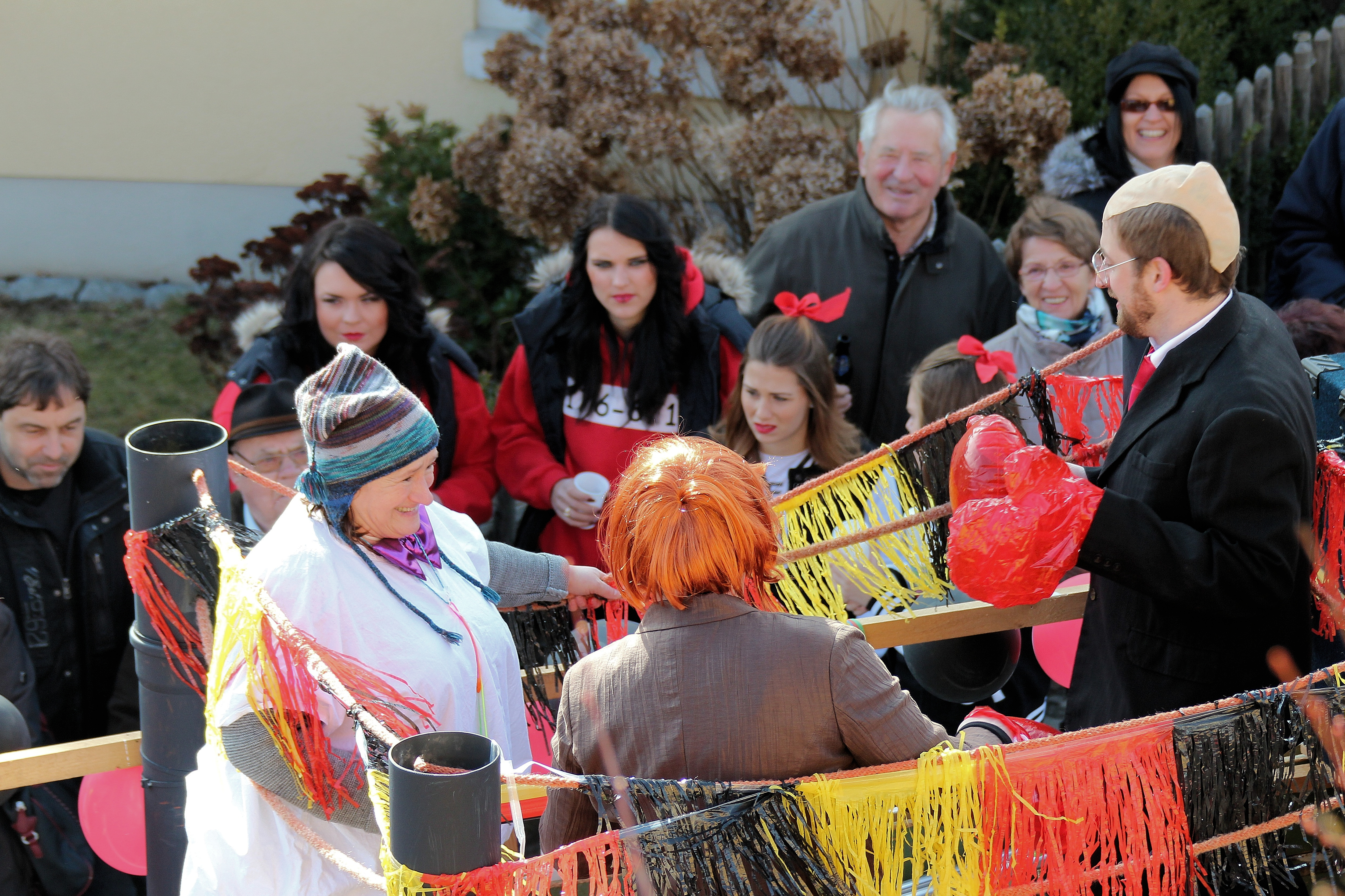 Freiwillige Feuerwehr Gleiritsch beim örtlichen Faschingszug mit MdB Marianne Schieder (links) auf dem Faschingswagen (25. Februar 2017).