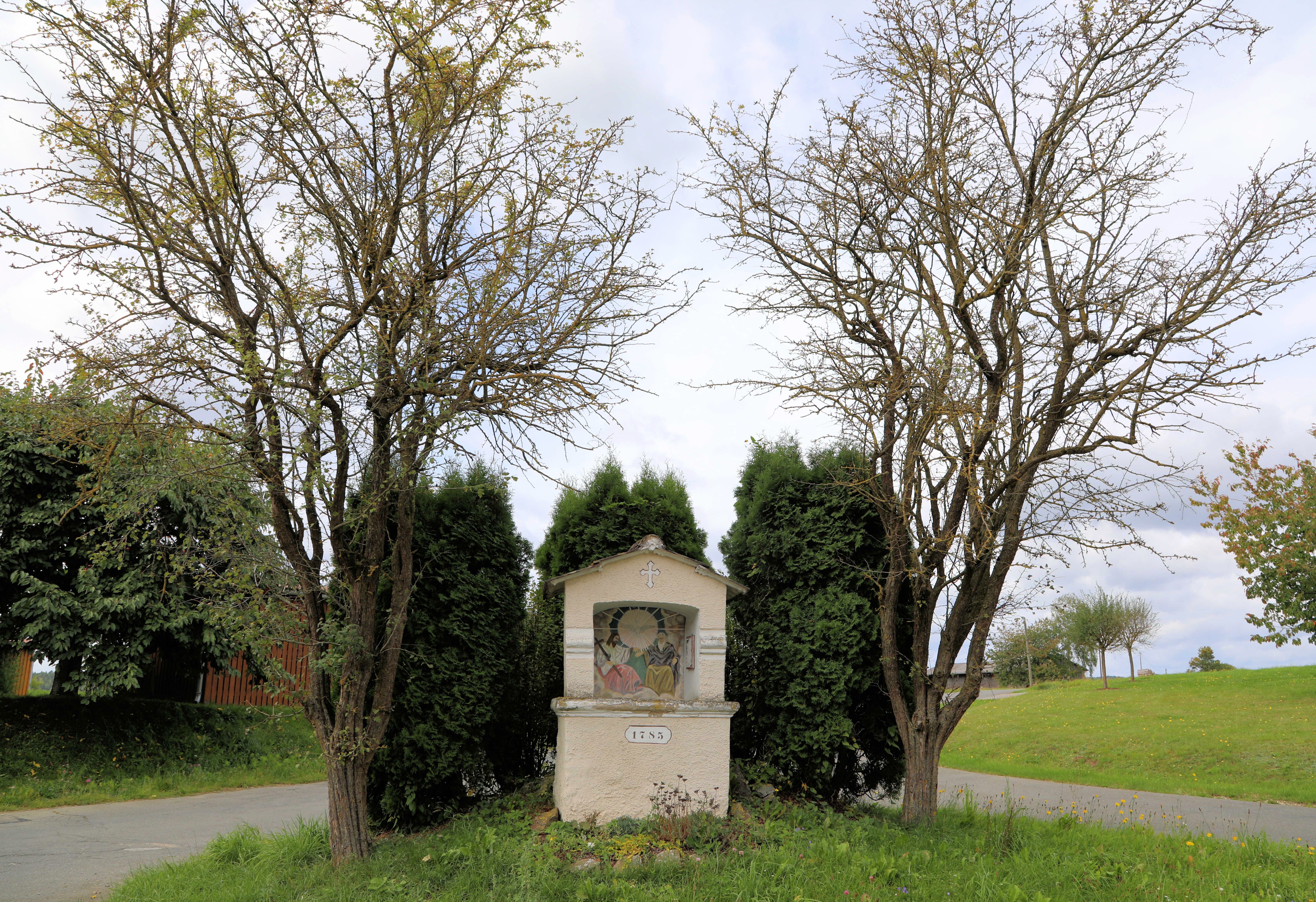 Gemauerter Bildstock an der Straße Richtung Weinrieth in Großenschwand: Großenschwand, Markt Tännesberg, Landkreis Neustadt an der Waldnaab, Oberpfalz, Bayern (16. September 2025);