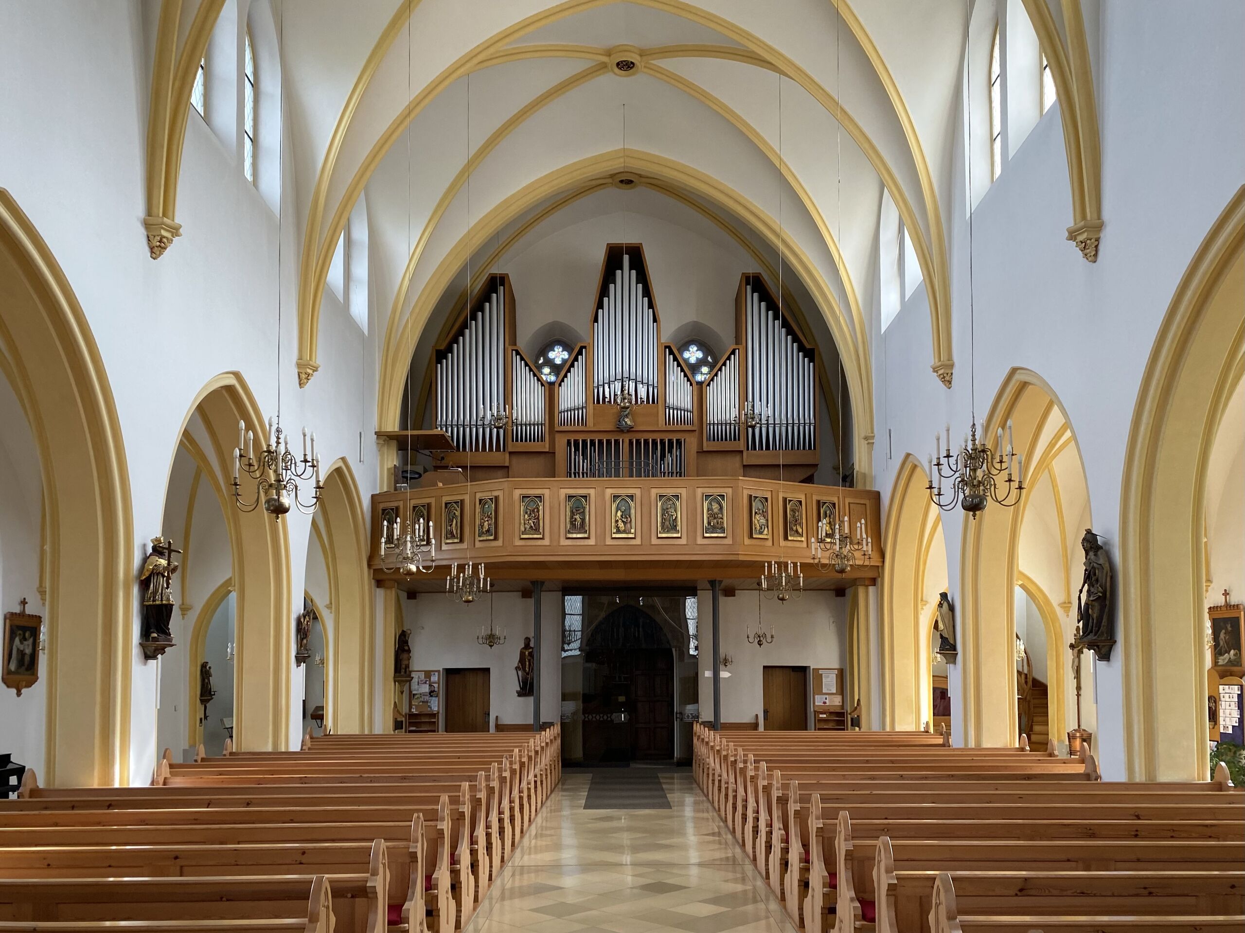 Das Foto zeigt die Orgelwand in der Kirche Herz Jesu in Sulzbach-Rosenberg.