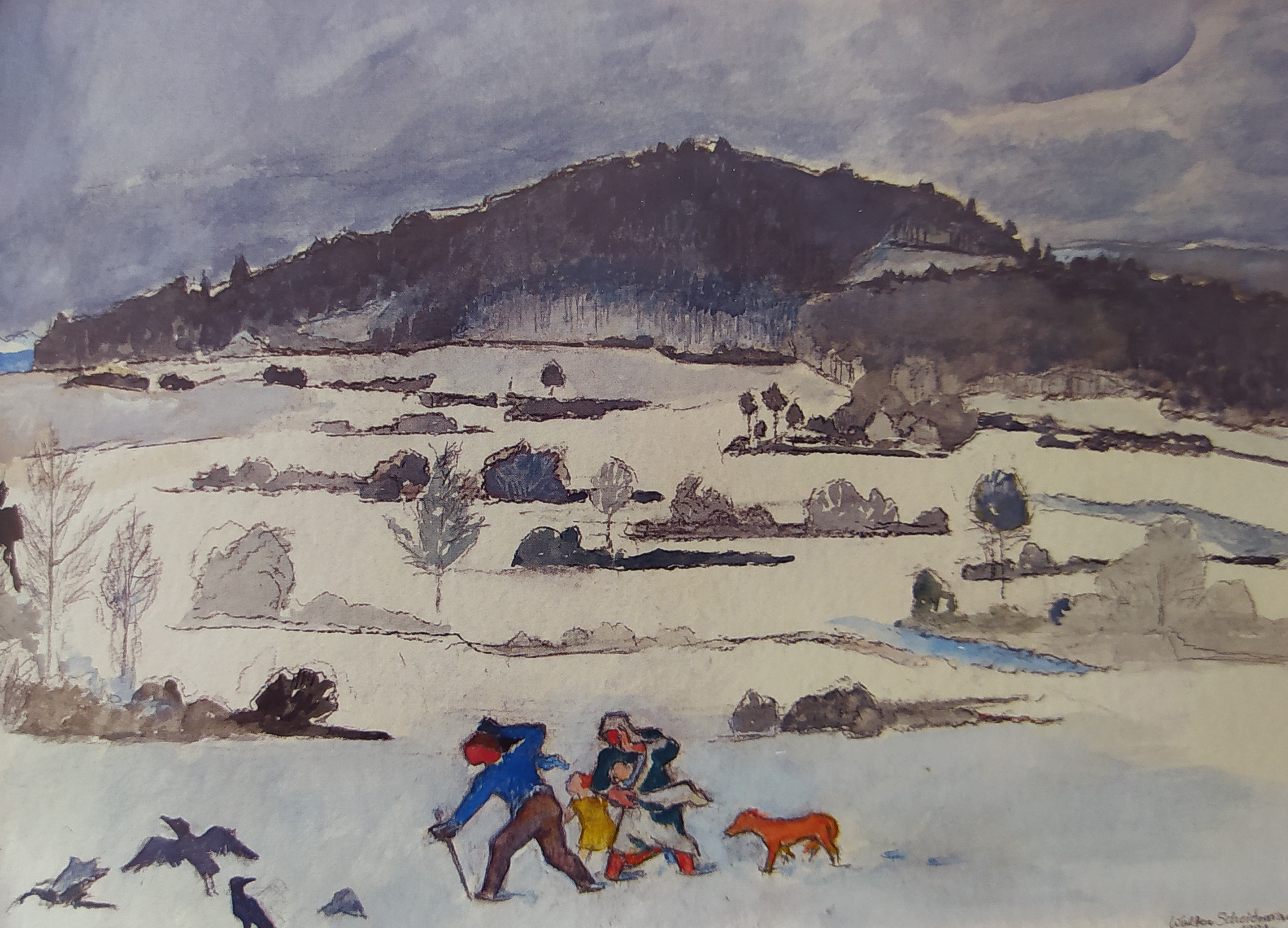 Im Schnee, Gouache, Walter Scheidemandel (1981)
