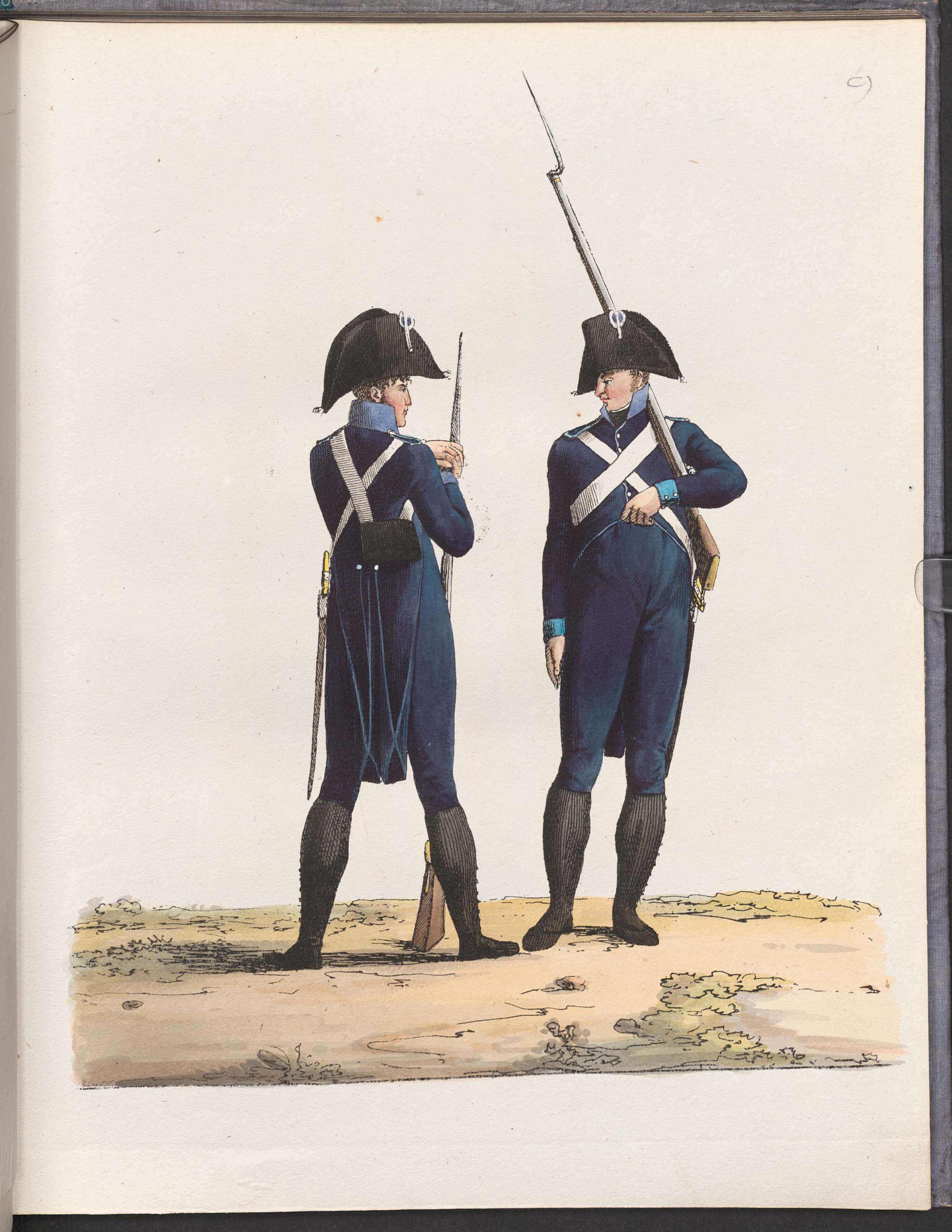 Litho - Bayerisches Bürgermilitär - Uniformen - 1807. Aus dem Buch: Uniformirung und Organisation des Bürger-Militärs in dem Königreiche Baiern