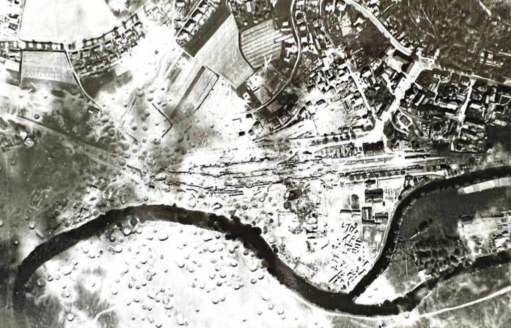 Datei:Luftbild - Cham - Zerstörungen - nach Luftangriff 18 April 1945.jpg