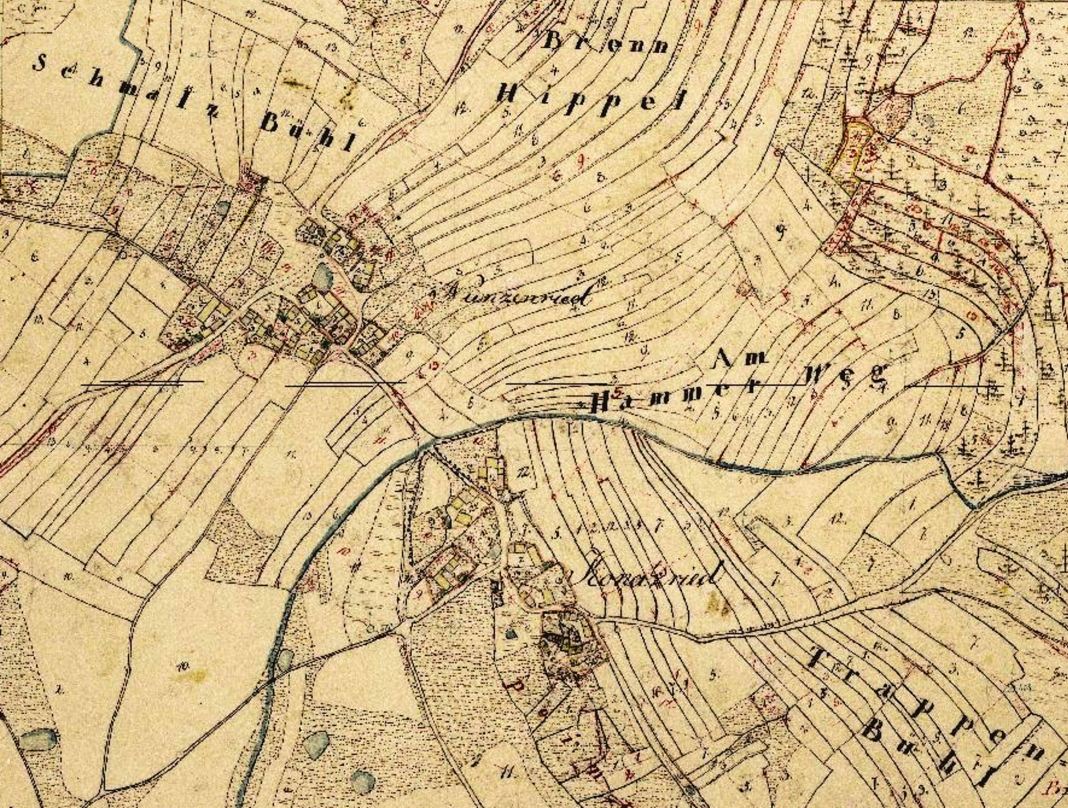 Nunzenried, Karte (Ausschnitt) Landvermessung in Baiern (1808-1864): Nunzenried, Stadt Oberviechtach, Landkreis Schwandorf, Oberpfalz, Bayern;