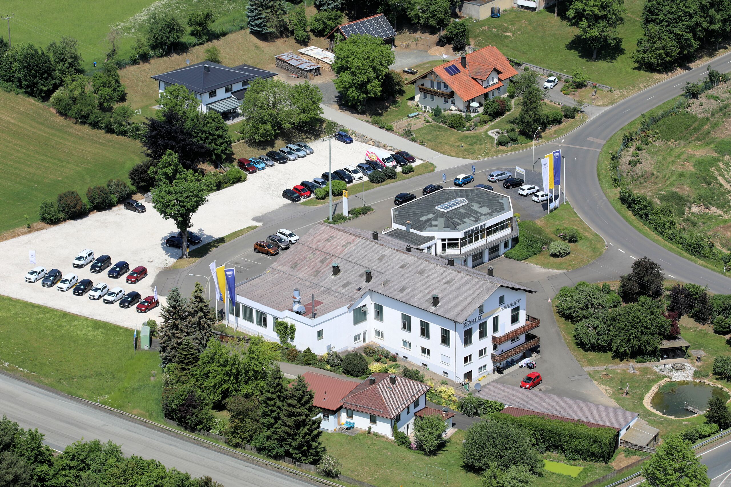 Autohaus Hanauer in Oberviechtach, direkt an der B 22 gelegen: Oberviechtach, Landkreis Schwandorf, Oberpfalz, Bayern (27. Mai 2018)