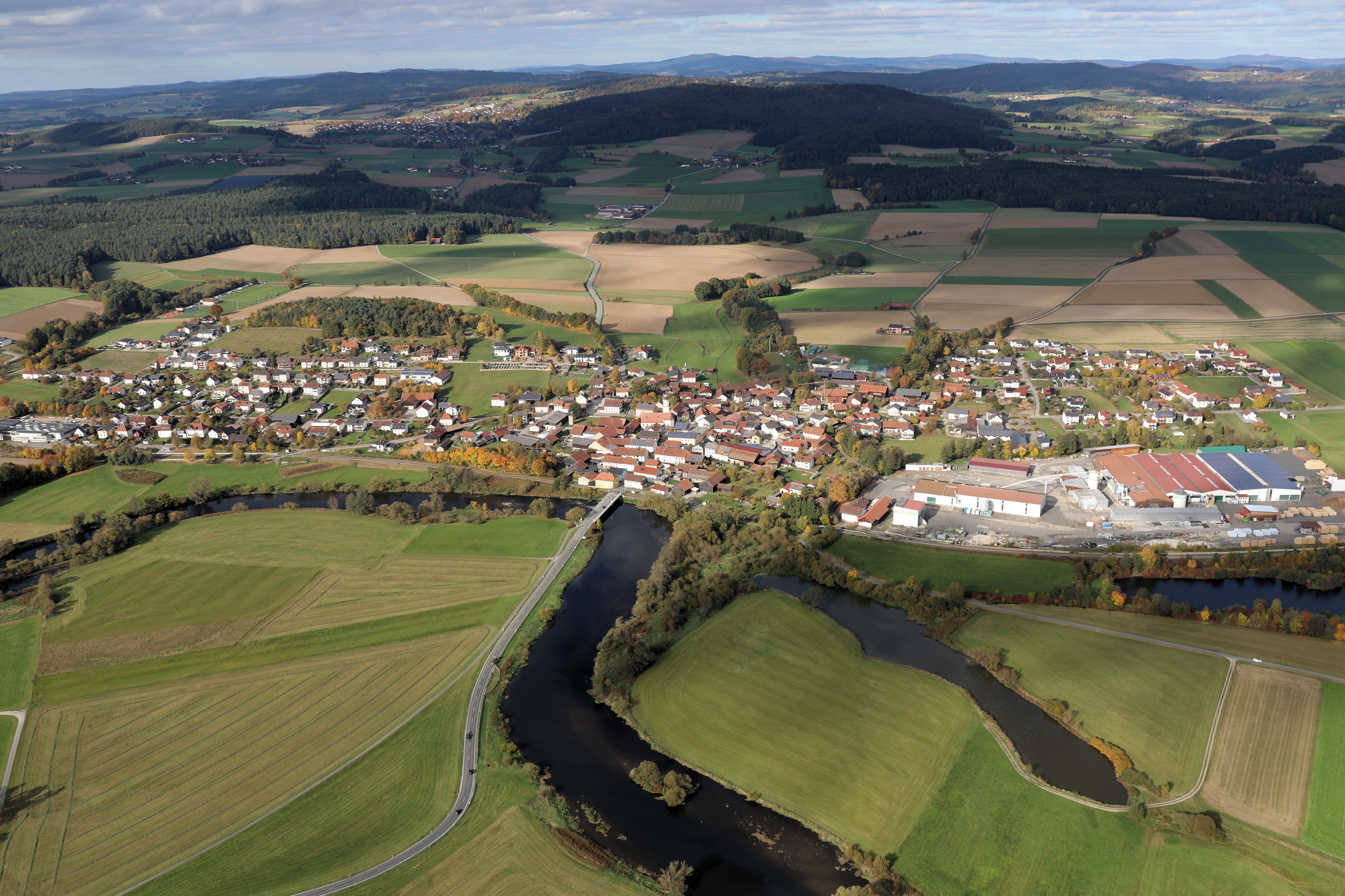 Pösing am Fluss Regen, Gemeinde Pösing, Landkreis Cham, Oberpfalz, Bayern (18. Oktober 2025)
