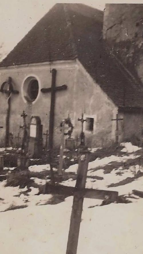 Photo - Lutzmannstein - Friedhof und Kirche im Schnee - schwarzweiß.