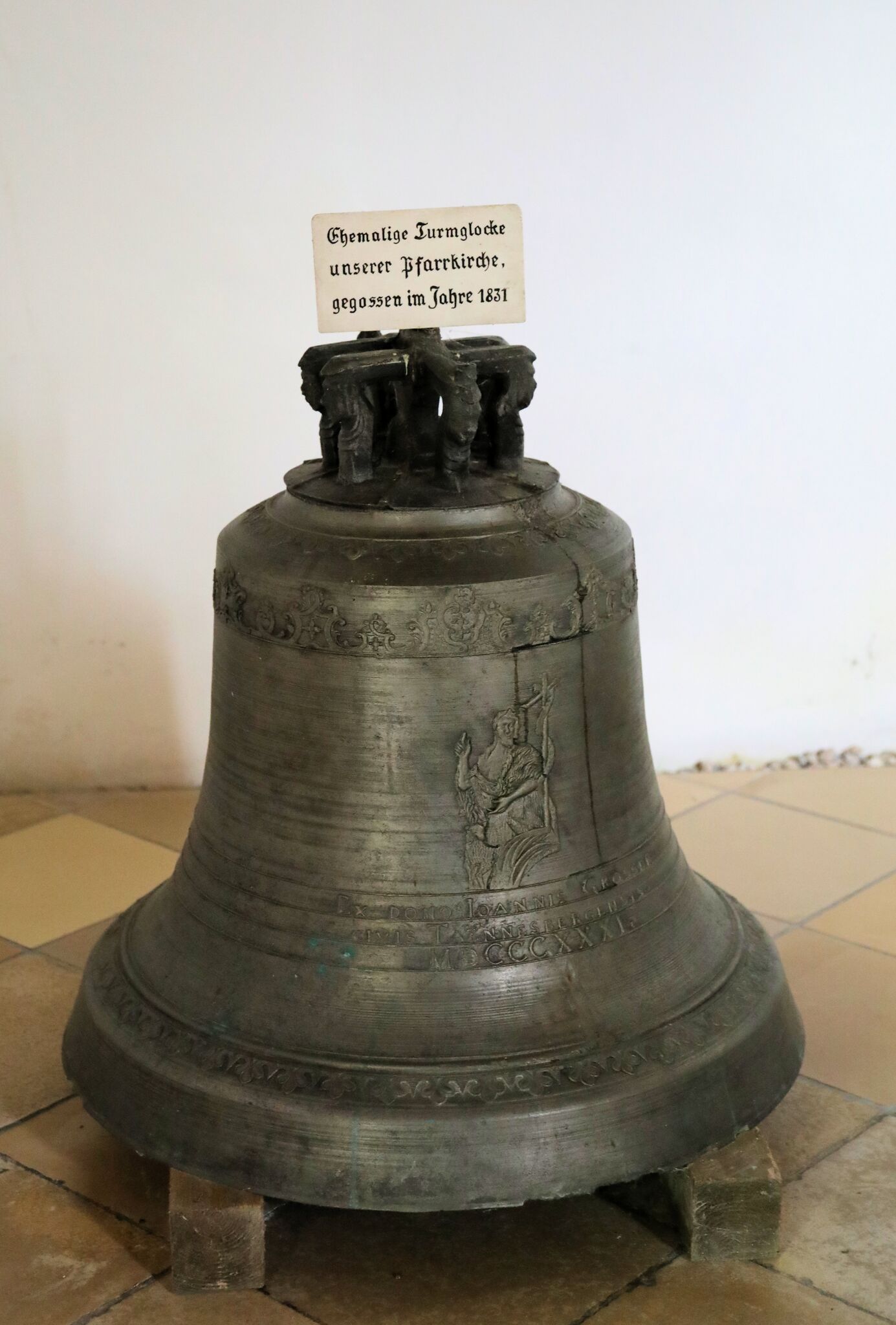 alte Kirchenglocke von St. Michael ausgestellt in St. Jodok; Tännesberg, Landkreis Neustadt an der Waldnaab (2025);