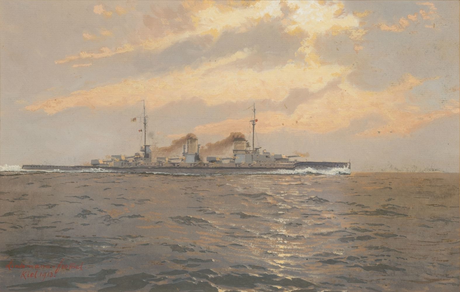 Tempera - SMS Seydlitz - Kiel - von Manfred Lindemann-Frommel - 1913.