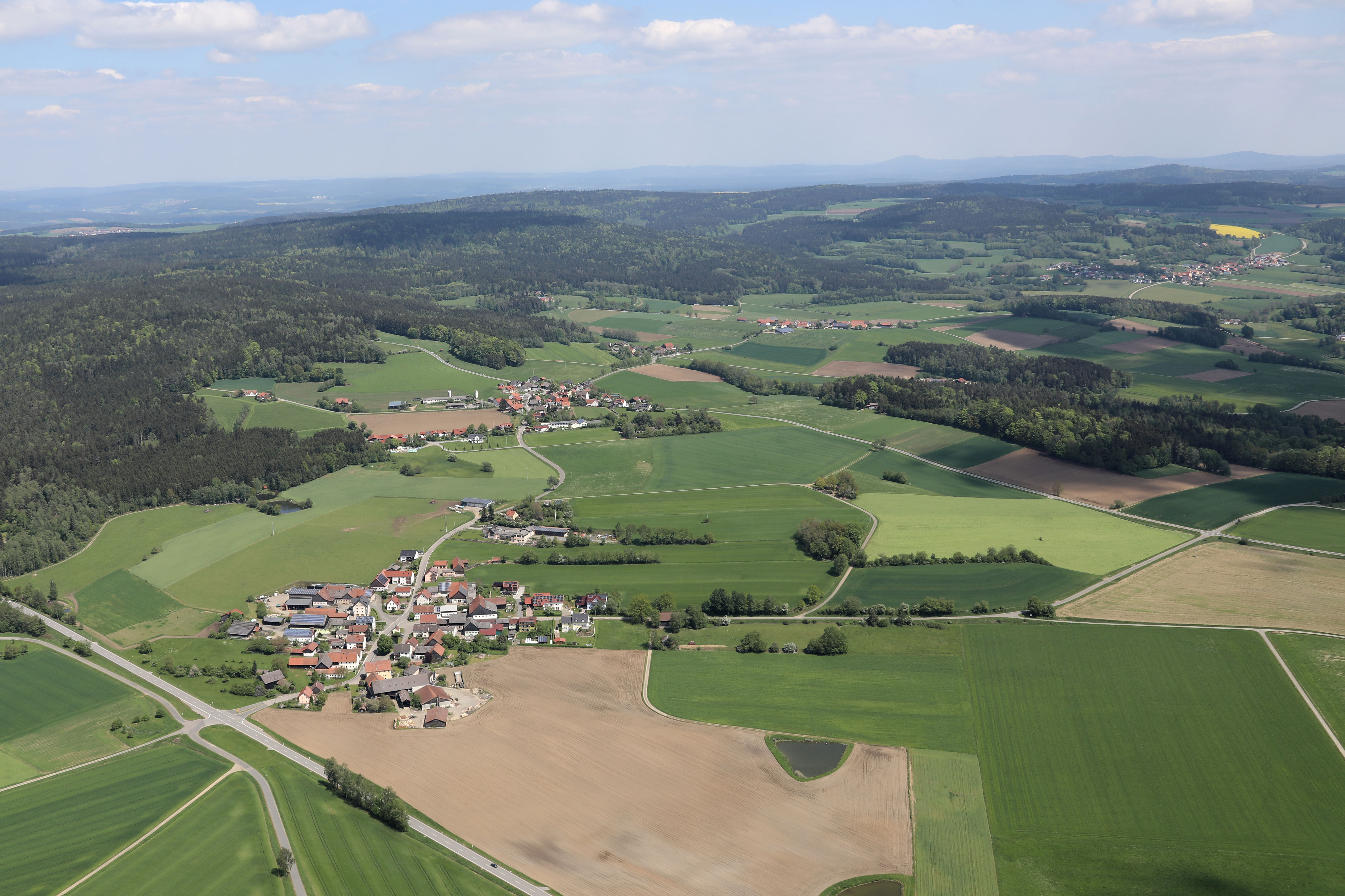 Zeinried (unten), Ödmiesbach (Bildmitte links): Gemeinde Teunz, Landkreis Schwandorf, Oberpfalz (2024);